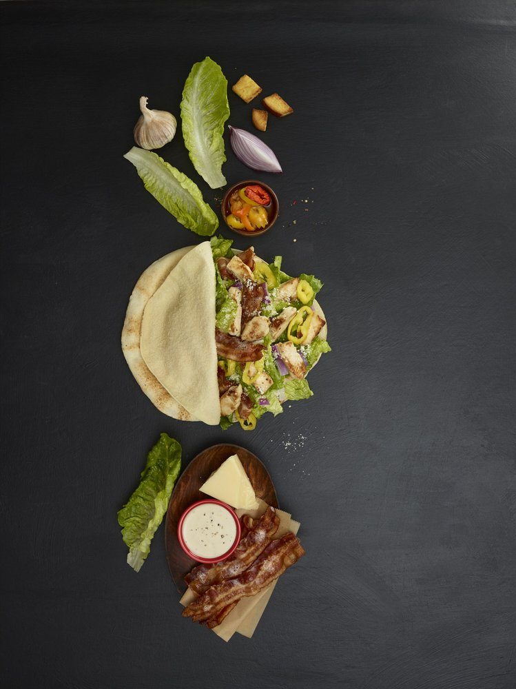 Grilled chicken with bacon, mozzarella and ranch in a pita seared in avocado oil.
